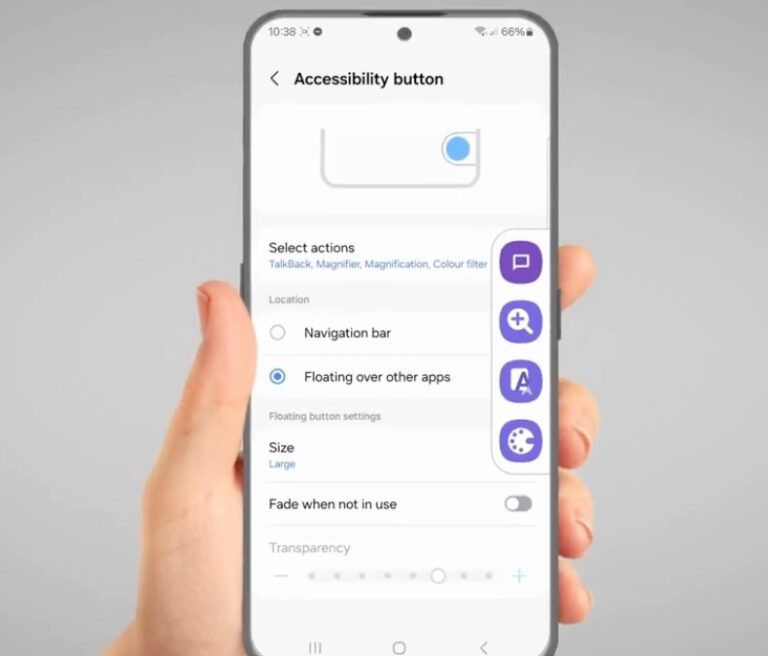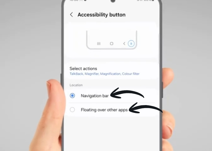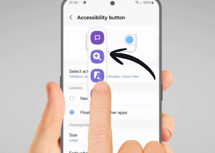 The accessibility shortcut can also appear as a floating dock over other apps, which you can move anywhere on your screen. Simply drag it with your finger to place it where you prefer.