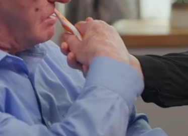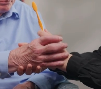 For those with reduced limb strength or coordination, gently guide the toothbrush to their mouth while they are holding it. Assist them through the brushing process.