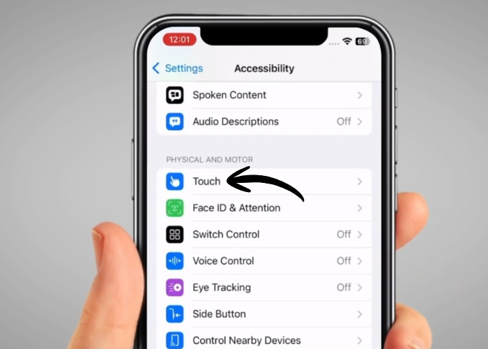 Then scroll down and tap on 'Touch' under 'Physical and Motor' heading.