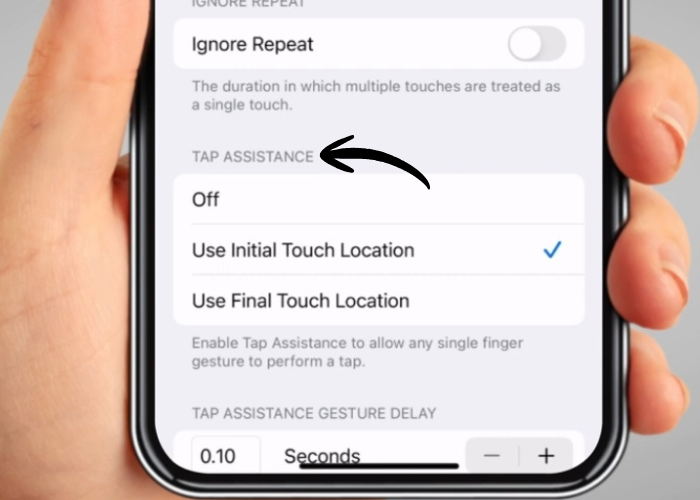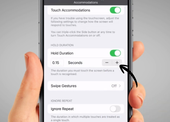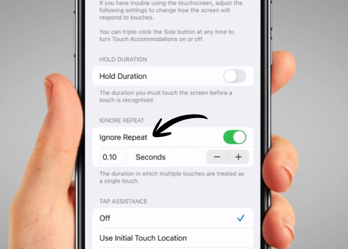 'Ignore Repeat' helps if you usually tap more than once in a row by accident. Tap the switch to turn it on.