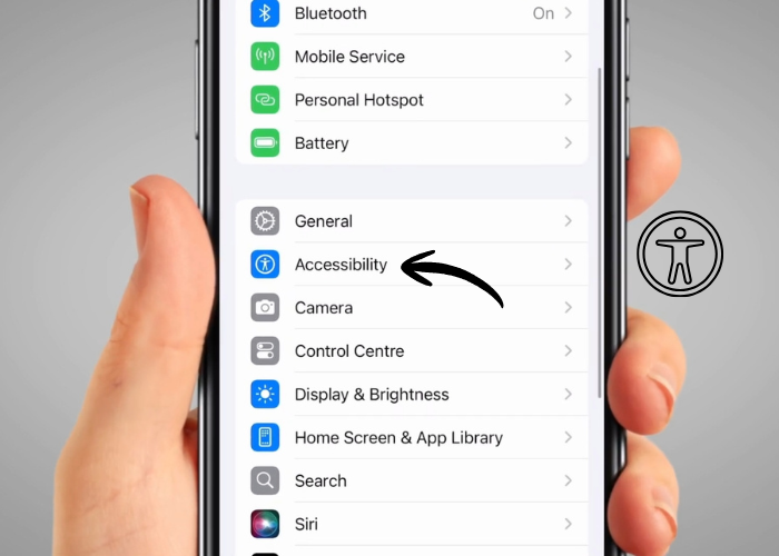 Scroll down to find ‘Accessibility’. It's blue and has a white stick man on it. Tap on it.
