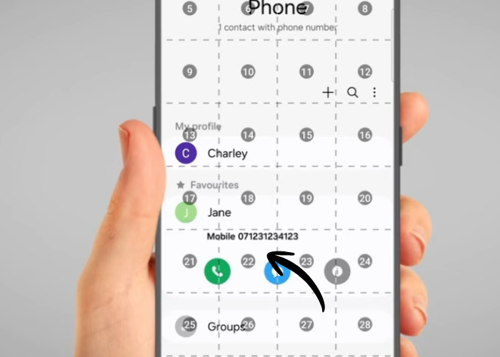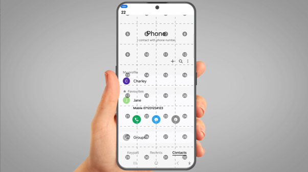 Then say, "Show Grid". Say “Tap 22”, or the number that corresponds to the location of the person’s name you want to call.