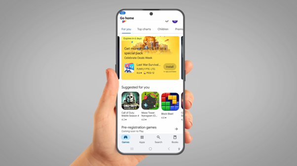 'Voice Access' app does not come installed on Android. So to install it, you will need to unlock your device and tap on the ‘Play store’. It is a white icon with a colourful triangle on it.