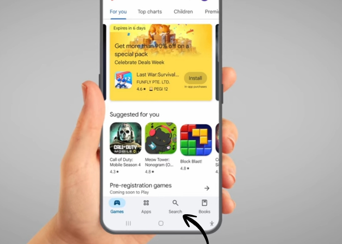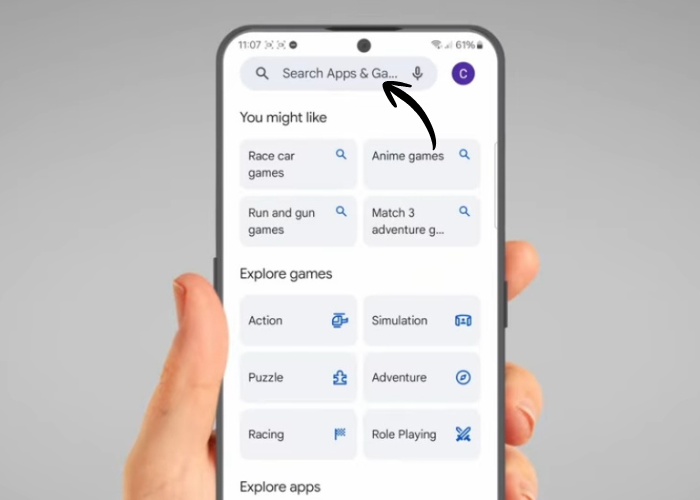 Then tap the search bar at the top of the screen.