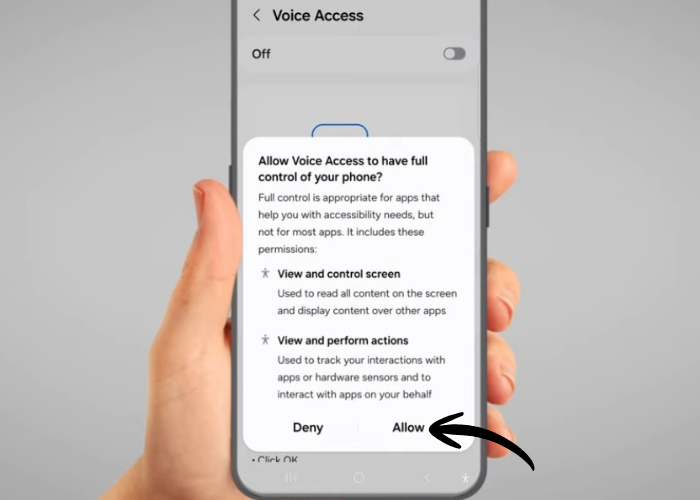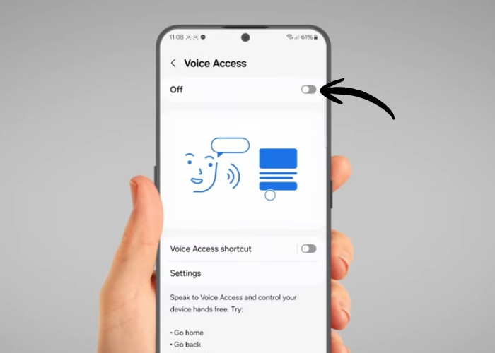 Tap the switch on the top of the screen to activate 'Voice Access'.