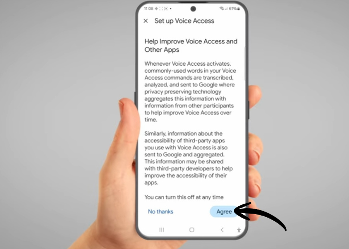 The app will ask you if you want to share audio data with Google. Tap 'Agree'.