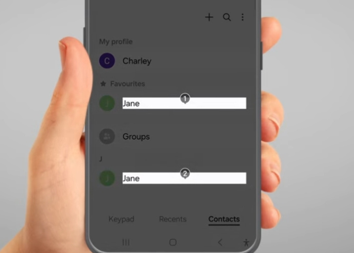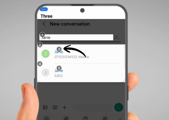 If contact names are repeated, numbers will appear next to them. The number corresponds to the location you want to press, e.g. 3.