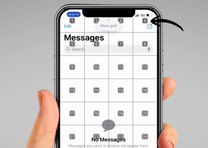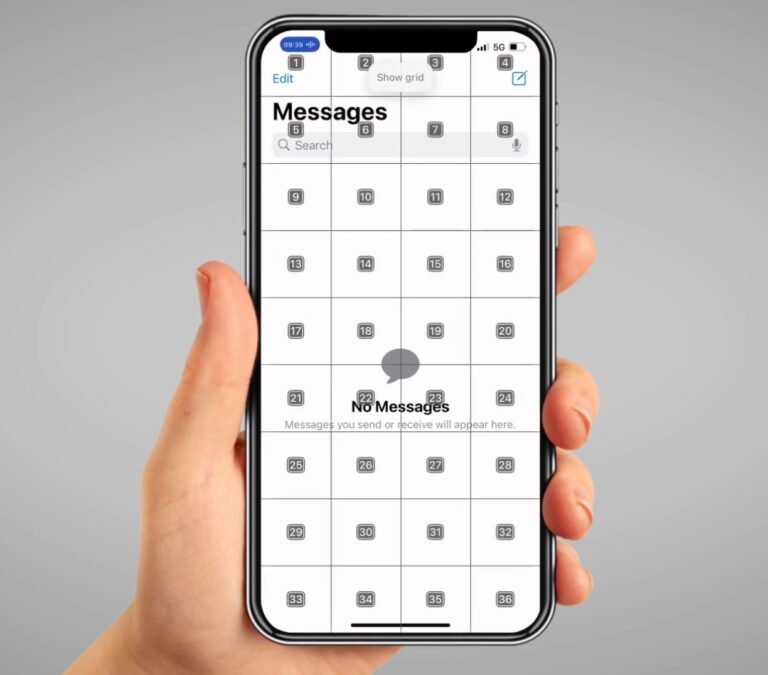 A smaller grid will appear. Then say, “Tap 9” to press the button in that section. In this case, it is the “New message” button.