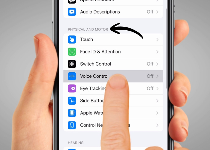 Scroll down to find ‘Voice Control’. This is under the 'Physical and Motor' heading. Tap on it.