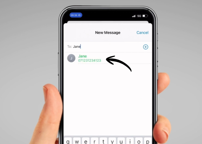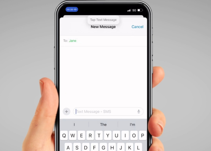 Say the name of the person you want to write a message to, for example “Jane”. The contact's name and phone number will then appear in green. Say "Tap Jane".