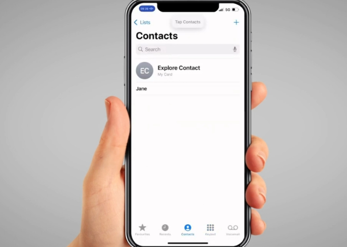 Then say "Tap Contacts".